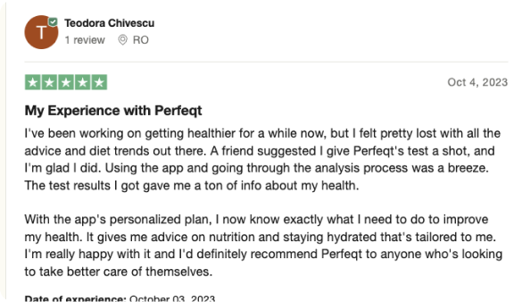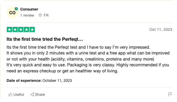 While Perfeqt is not intended to replace lab or medical testing (as clearly stated in our disclaimer), most users still found it valuable for gaining quick wellness insights within just 2 minutes.